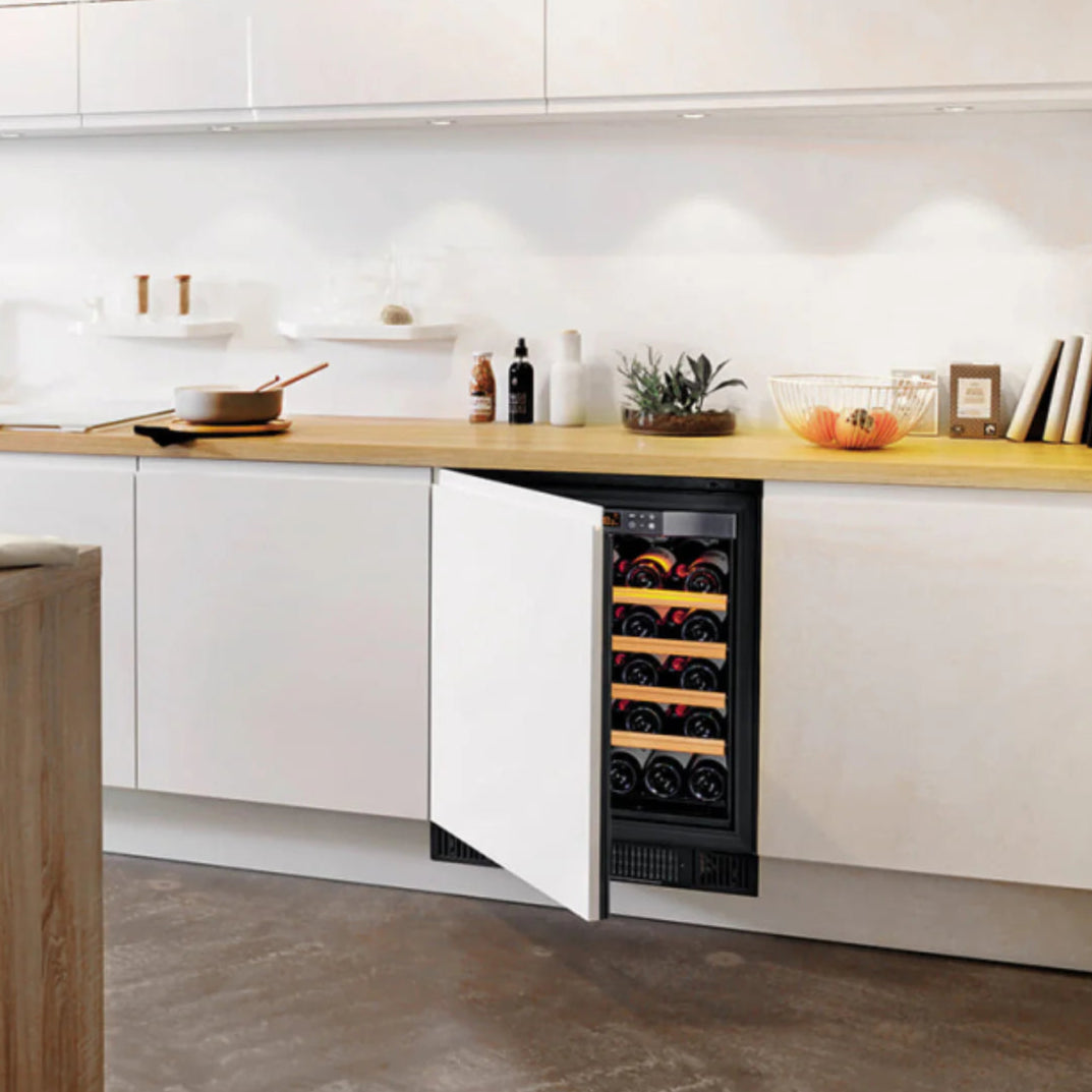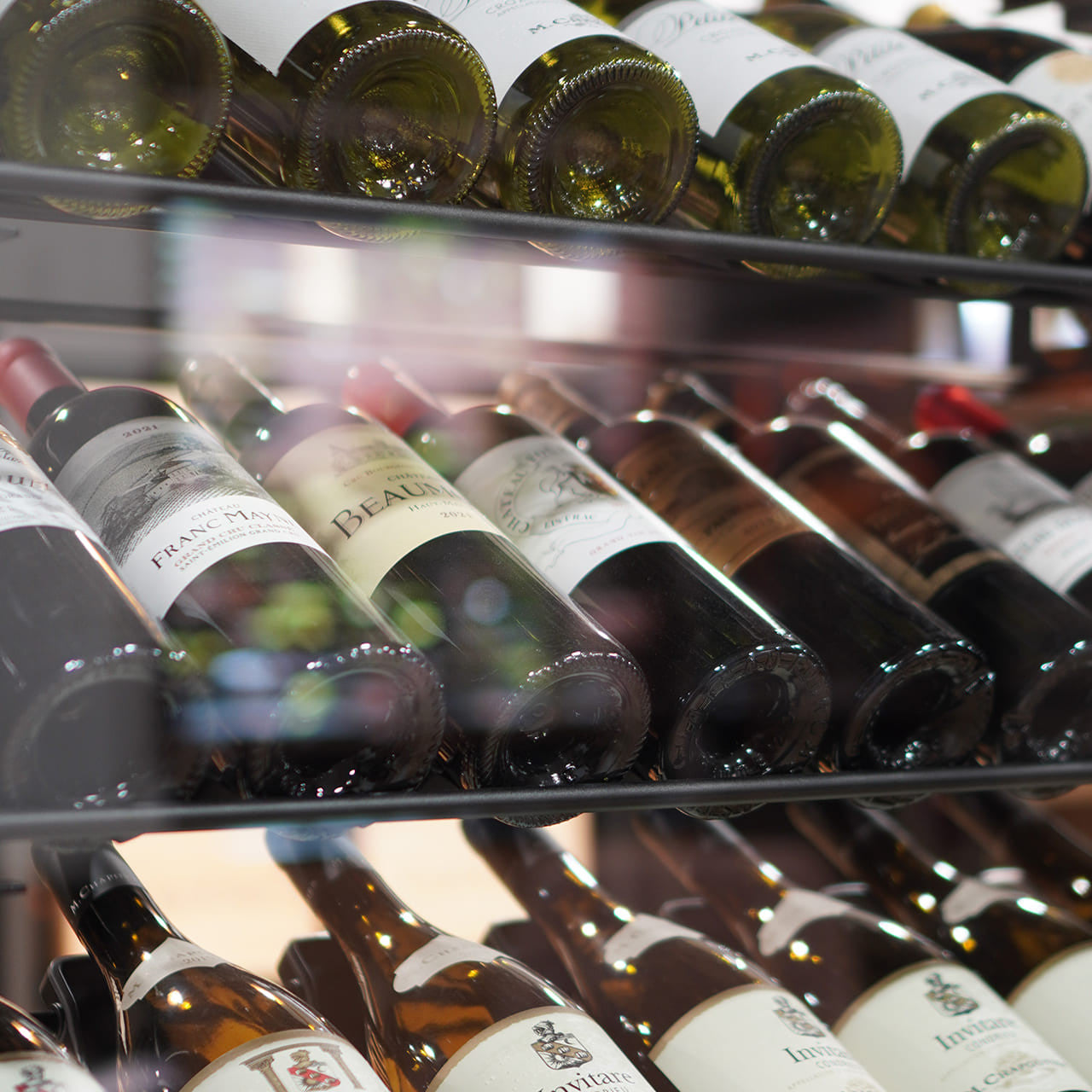 The flush-fitting wine cabinets in the Compact collection fit perfectly into kitchens since their dimensions are determined by kitchen designers.
